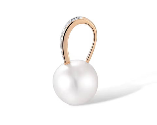 Dije en oro de 14k, Perla Natural de Río y Diamantes