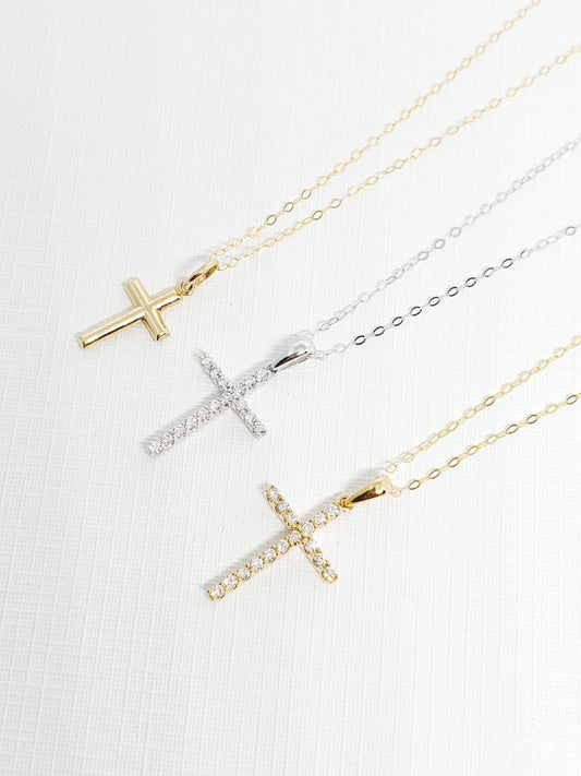 Dije de Cruz de Zafiros Blancos y Azules y Oro de 14k